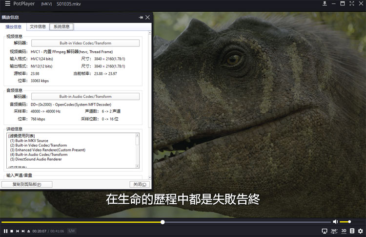 7、关于字幕和声音:MKV的影视资源都是内封字幕音轨,网盘播放是无法解析的,下载到本地电脑用potplayer,手机用QQ影音播放。