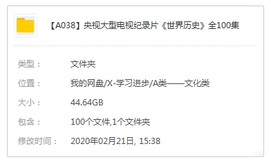央视纪录片《世界历史》全100集高清百度云网盘下载[AVI/44.64GB]