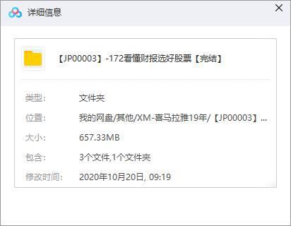 本资源为《看懂财报选好股票》百度云网盘资源分享下载,具体看下文目录,格式为MP4/657.33MB。本资源已做压缩包防和谐处理,请勿直接在百度网盘中和谐资源用不了,下载到本地之后解压在观看。