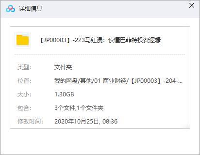 本资源为《马红漫:读懂巴菲特的投资逻辑》百度云网盘资源分享下载[MP3/1.30GB],具体看下文目录。本资源已做压缩包防和谐处理,请勿直接在百度网盘中和谐资源用不了,下载到本地之后解压在观看。