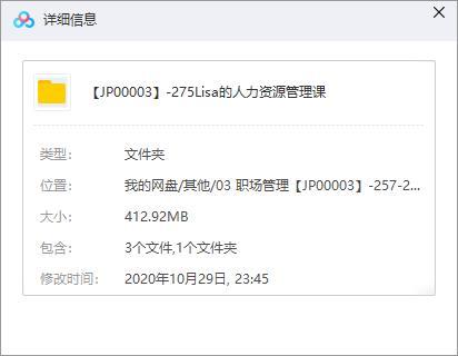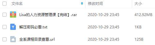 本资源为《Lisa的人力资源管理课》百度云网盘资源分享下载[MP3/412.92MB],具体看下文目录。本资源已做压缩包防和谐处理,请勿直接在百度网盘中和谐资源用不了,下载到本地之后解压在观看。
