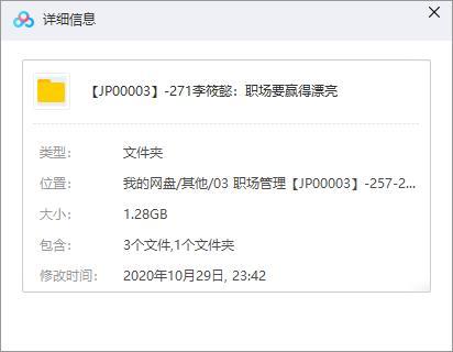 本资源为《李筱懿:职场要赢得漂亮》百度云网盘资源分享下载[MP3/1.28GB],具体看下文目录。本资源已做压缩包防和谐处理,请勿直接在百度网盘中和谐资源用不了,下载到本地之后解压在观看。