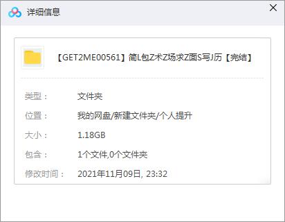 本资源为《简历包装术|职场求职面试写简历》百度云网盘下载[MP4/1.18GB],具体看下文目录。本资源已做7Z压缩包防和谐处理,下载到电脑之后解压再观看。