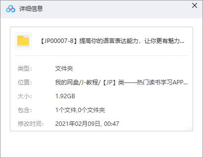 本资源为鹿小姐《提高你的语言表达能力,让你更有魅力》[视频+音频]百度云网盘下载[MP4/MP3/PNG/1.92GB],具体看下文目录。本资源已做7Z压缩包防和谐处理,下载到电脑之后解压再观看。