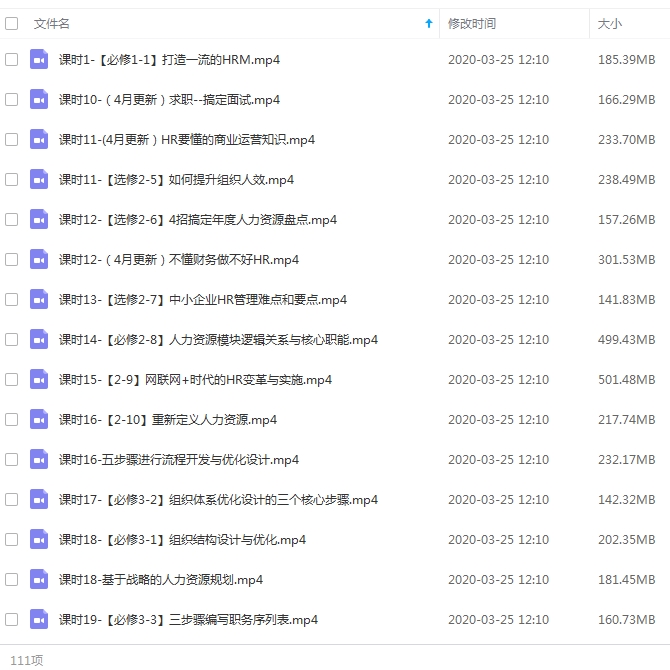 HR教程-成为HR专家的100门必修课视频教程合集百度云网盘下载[MP4/24.58GB]