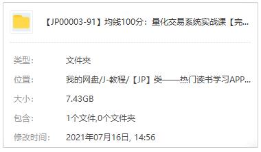 本资源为投资理财类课程,均线100分:量化交易系统实战课网盘资源分享下载,7Z压缩包格式,请下载解压后在观看学习!