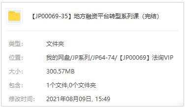 本资源为地方融资平台转型相关视频培训课程网盘分享下载,7Z压缩包,下载解压后在学习!