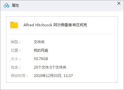 阿尔弗雷德·希区柯克导演电影作品20部(1935-1972)高清英语中字[MKV/MP4/50.79GB]百度云网盘下载,一共收录1935到1972年期间希区柯克导演电影20部,视频格式为MKV+MP4,高清英语中文字幕,本资源已做压缩包防和谐处理,请勿直接在百度网盘中解压会导致资源被和谐或者损坏,请下载到本地之后解压在观看。