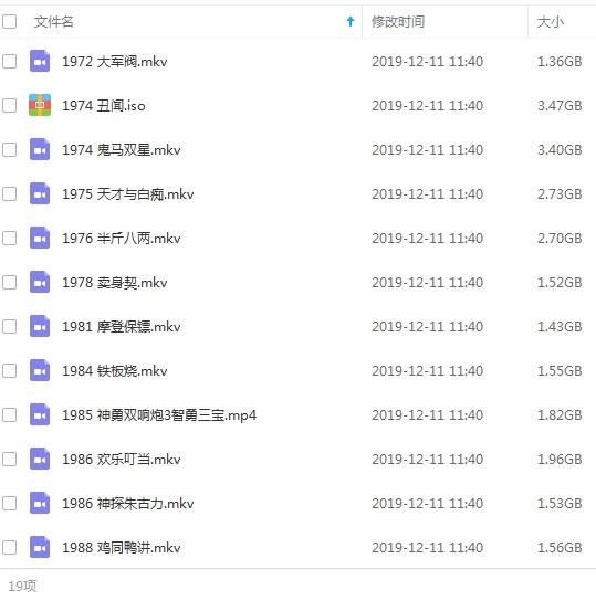 香港喜剧大师许冠文电影合集19部(1972-2014)合集高清[MKV/MP4/43.12GB]百度云网盘下载,包含许冠文从1972年到2014年期间主演的喜剧电影19部,视频格式为MKV+MP4,支持网盘在线观看,资源大小43.12GB。