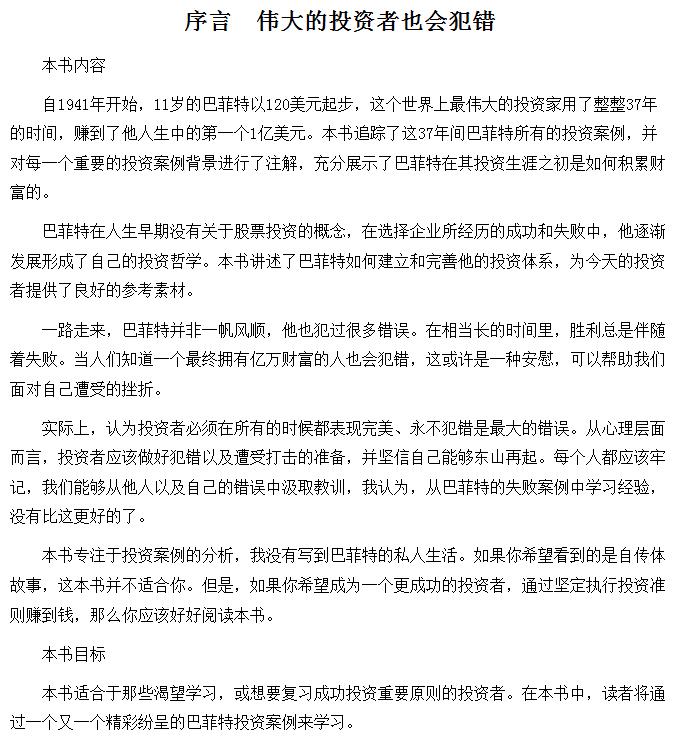 本资源为《巴菲特的投资理财课》[四册]EPUB电子书百度云网盘下载,格式为AZW3/EPUB/MOBI/36.28MB,具体见下文目录,本资源已做7Z压缩包防和谐处理,请下载到电脑之后解压再观看。
