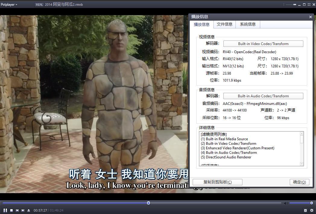 7、关于字幕和声音:MKV的影视资源都是内封字幕音轨,网盘播放是无法解析的,下载到本地电脑用potplayer,手机用QQ影音播放。