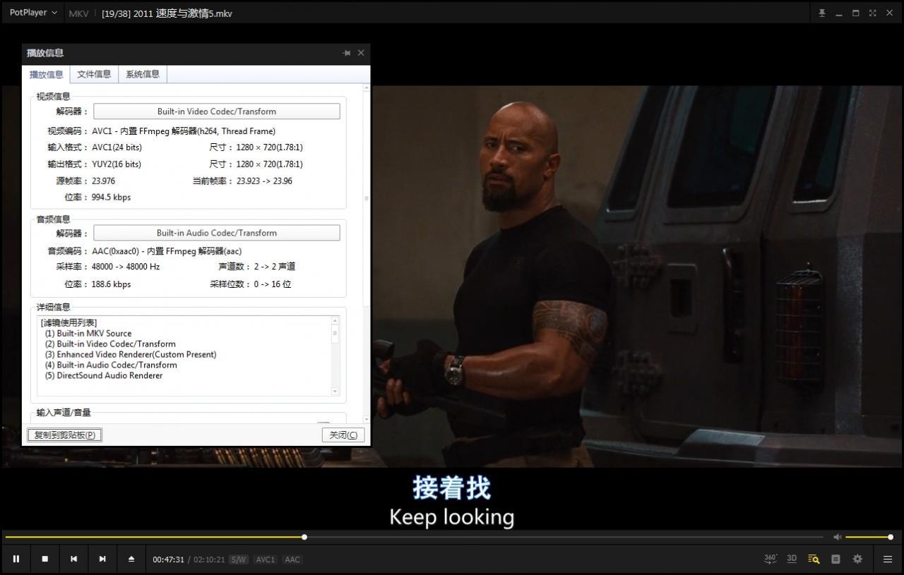 7、关于字幕和声音:MKV的影视资源都是内封字幕音轨,网盘播放是无法解析的,下载到本地电脑用potplayer,手机用QQ影音播放。