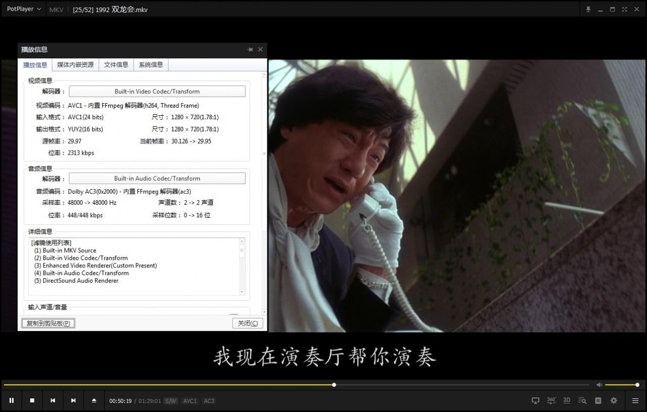 7、关于字幕和声音:MKV的影视资源都是内封字幕音轨,网盘播放是无法解析的,下载到本地电脑用potplayer,手机用QQ影音播放。