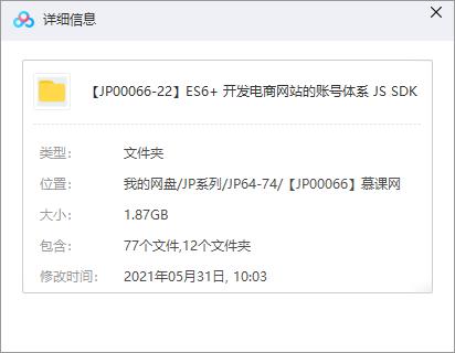 《ES6+ 开发电商网站的账号体系 JS SDK》视频MP4百度云网盘下载[MP4/1.87GB]