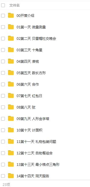 罗博深等多个文件与传统刷题课完全不同,这里以提高孩子们的数学思维方式为主导,逐级加深,最终结果是高中的孩子们也能从中受益,算是能够掌握到数学的灵魂,这点对他们的数学成长来说是非常珍贵的,因为掌握了数学这个工具的灵魂,也就是掌握了数学的未来。同时更难能可贵的是在学习数学的同时也顺带学习了英语,真是一举两得。