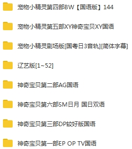 日本动漫《神奇宝贝(精灵宝可梦/宠物小精灵)》全7季+剧场版+特别篇[MKV/FLV/MP4/252.32GB]百度云网盘下载,包含动漫《神奇宝宝》动画系列全集视频,视频格式为MKV+FLV+MP4,第一季到第五季台配国语全集,第一季含52集辽艺配音版,更新至第七季全集,剧场版国语暂更新至2014,资源大小252.32GB。本资源已做压缩包防和谐处理,请勿直接在百度网盘中下载解压会提示损坏,下载到本地之后解压在观看。