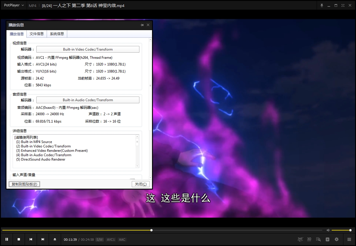 7、关于字幕和声音:MKV的影视资源都是内封字幕音轨,网盘播放是无法解析的,下载到本地电脑用potplayer,手机用QQ影音播放。