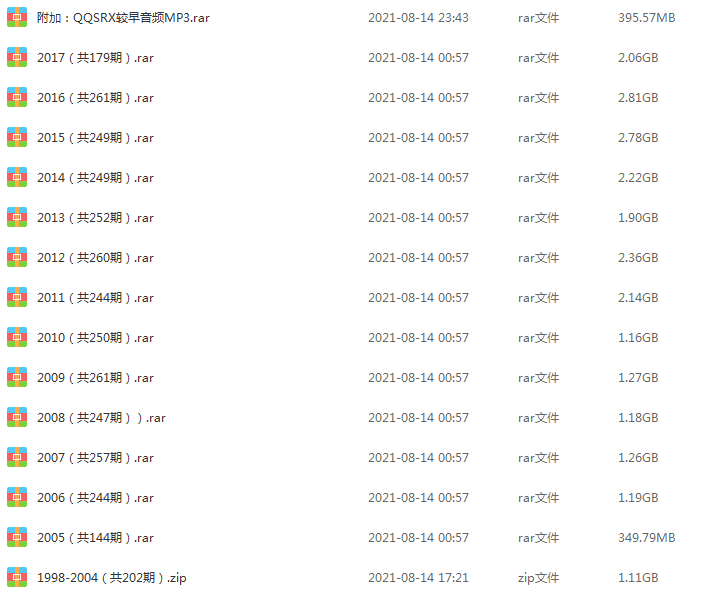 本资源为窦文涛《锵锵三人行1998-2017》音频/视频合集百度云网盘资源分享下载[MP3/MP4/RMVB/276.32GB],音频共3300期,视频共2014期,可能是目前全网最全合集。具体看下文目录,格式为MP3/MP4/RMVB,资源大小275.36GB。本资源已做压缩包防和谐处理,请勿直接在百度网盘中下载解压会提示损坏,下载到本地之后解压在观看。