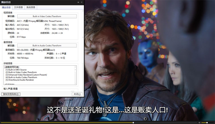 7、关于字幕和声音:MKV的影视资源都是内封字幕音轨,网盘播放是无法解析的,下载到本地电脑用potplayer,手机用QQ影音播放。