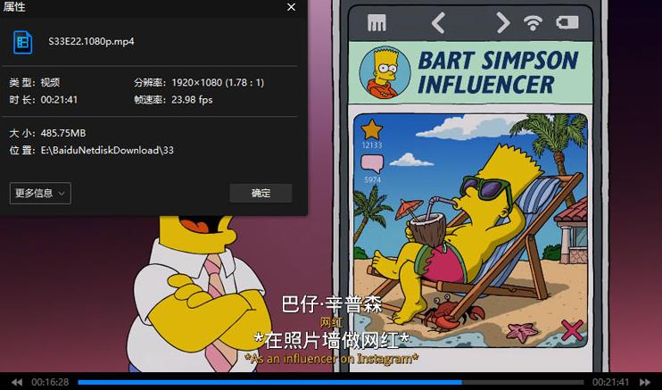 动画《辛普森一家/The Simpsons》全33季英语中字百度云网盘下载[MP4/RMVB/463.51GB]
